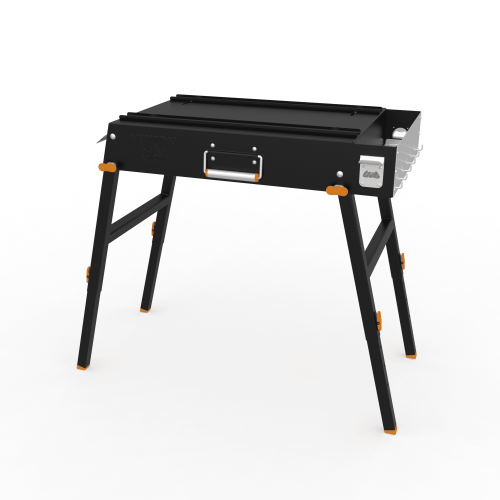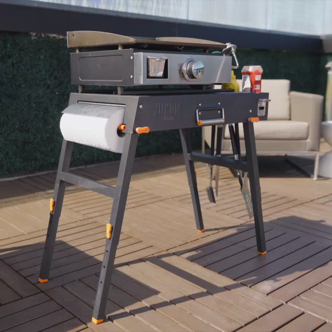 Its universal and deeply researched design can accommodate various grill and griddle sizes, offering stability and work space from 17" propane griddles to 22" Blackstone griddles in rugged environments.